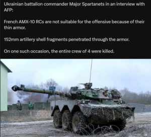 法援乌AMX-10RC战车,被乌军吐槽:装甲太薄
