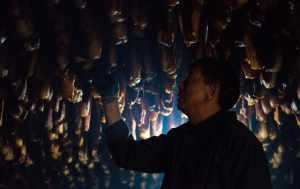 图为在重庆市城口县修齐镇赵孝春野生食品开发有限公司,赵孝春在炕房里查看腊肉熏制情况。新华社发