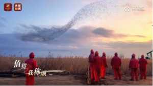 图为《世界赠予我的》MV中石油工人拍摄黄河三角洲国家级自然保护区风景。