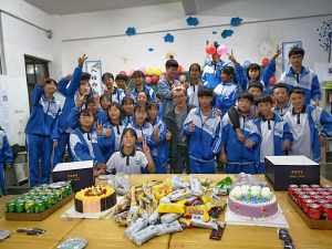 图为李微楠和云南省临沧市云县大寨镇大寨中学的学生在一起。(受访者供图)